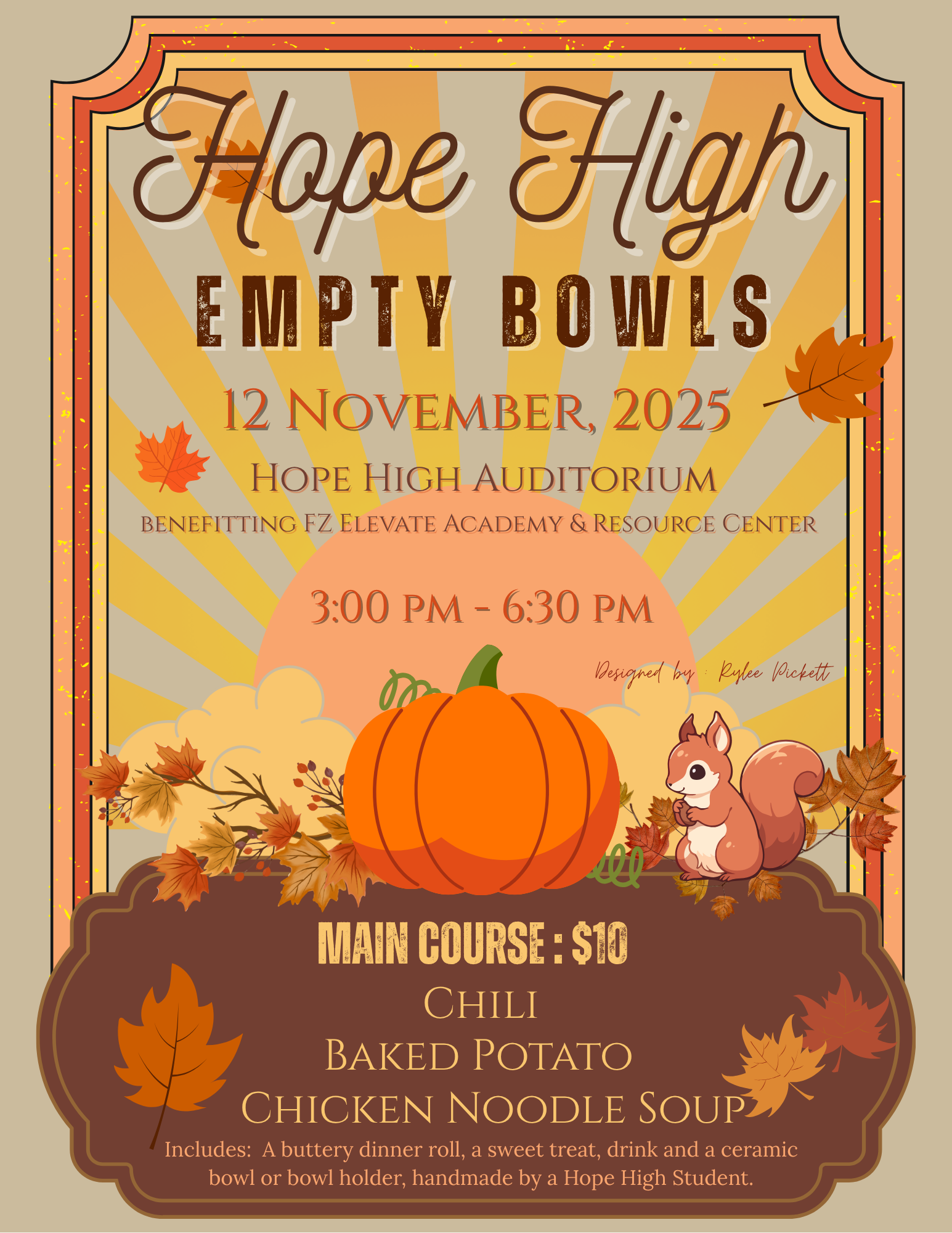 🥣 Empty Bowls - November 12 📍Hope High 🕒 3:00-6:00 pm 🪙 $10 Per Person