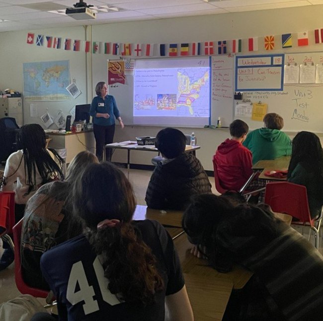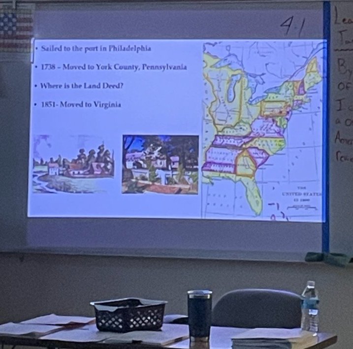 Mrs. Suzann Paulter, a descendant of the Zumwalt family, shared her family’s journey from the East Coast to the Midwest. Students learned about the pioneers who built Zumwalt’s Fort and the family’s proud military legacy- including Admiral Elmo R. Zumwalt Jr., former Chief of Naval Operations.